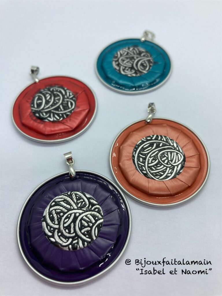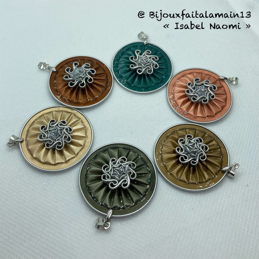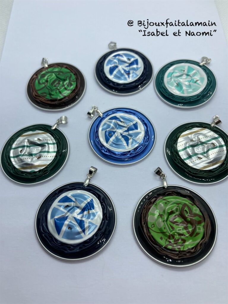 Pendentifs Nos pendentifs sont tous des pièces uniques avec des capsules de café en aluminium recyclées et faits à la main.